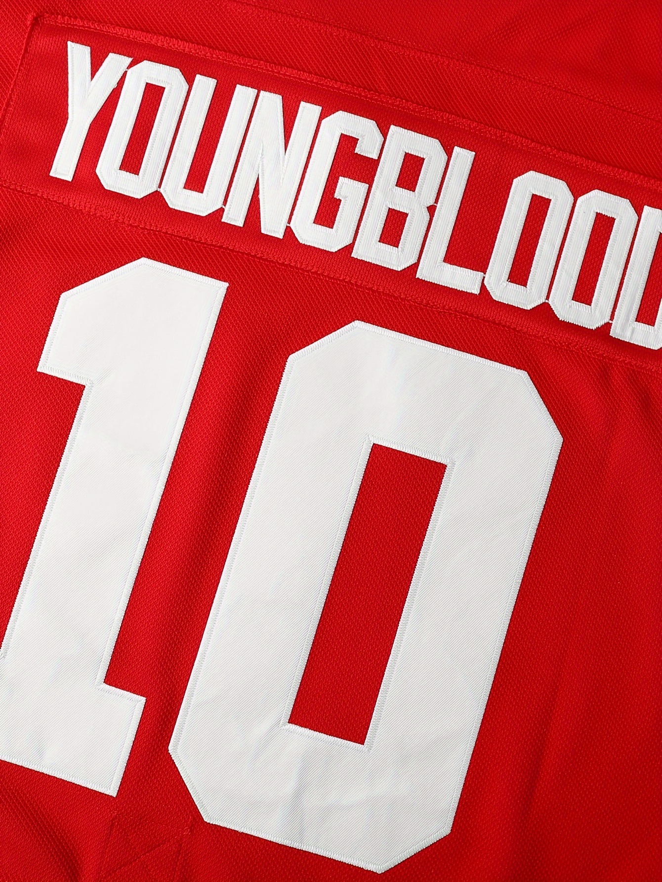 Men's #10 Ice Hockey Jersey - Red V-Neck Long Sleeve with Embroidered Letters & Logo, Breathable Polyester, Loose Fit for Sports, Casual Wear, Parties (Sizes S-3XL), Outdoor Activity Apparel, Durable Sportswear