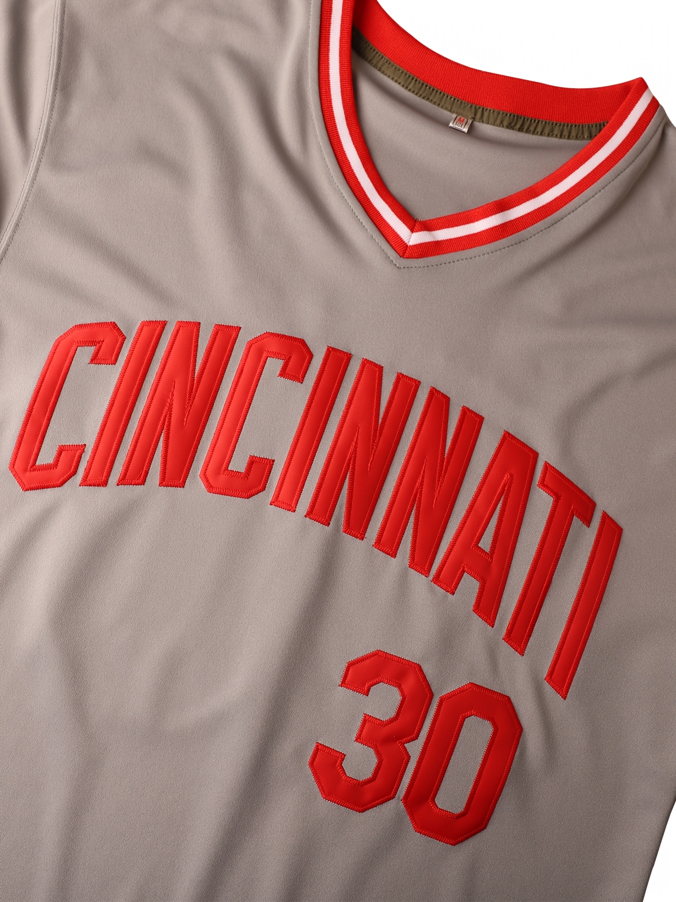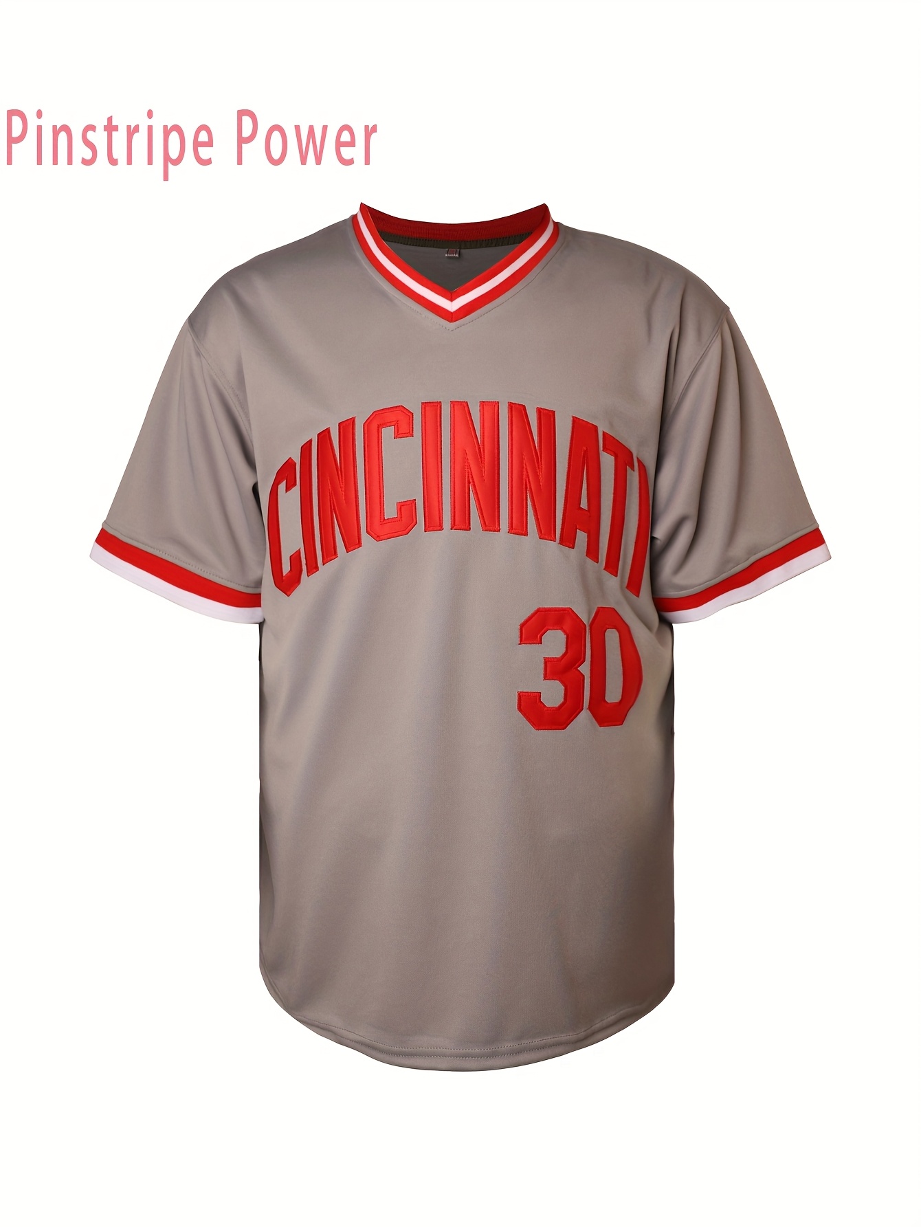 Men'S V-neck Baseball Jersey # 30 Gray Embroidered Breathable Lightweight, Perfect For Training And Casual Wear Size S-3XL
