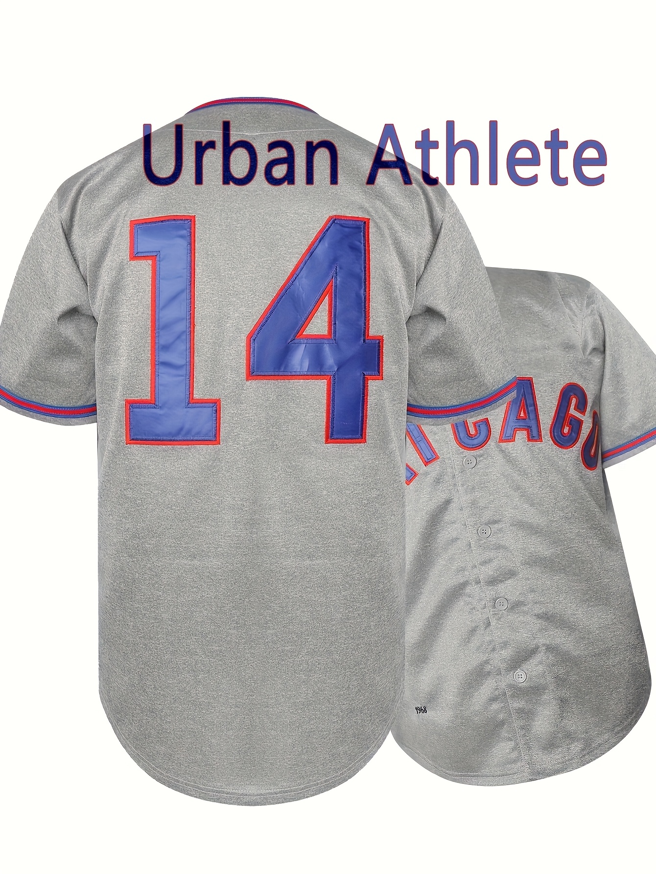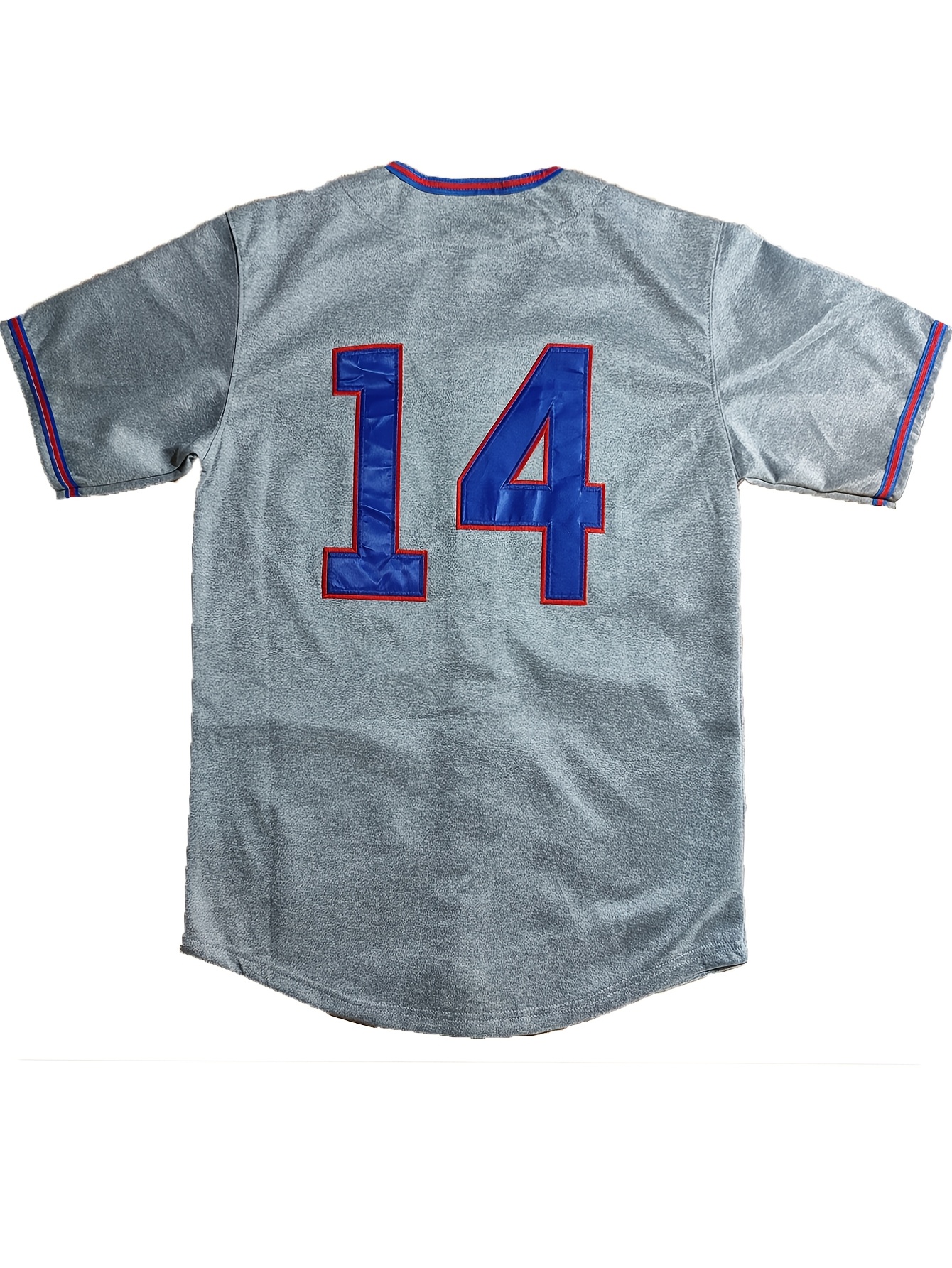 All Stitched 14 Grey Baseball Jersey Embroidery V Neck Short Sleeve Baseball Shirt, Breathable Button-Up Sports Uniform For Training Competition Party