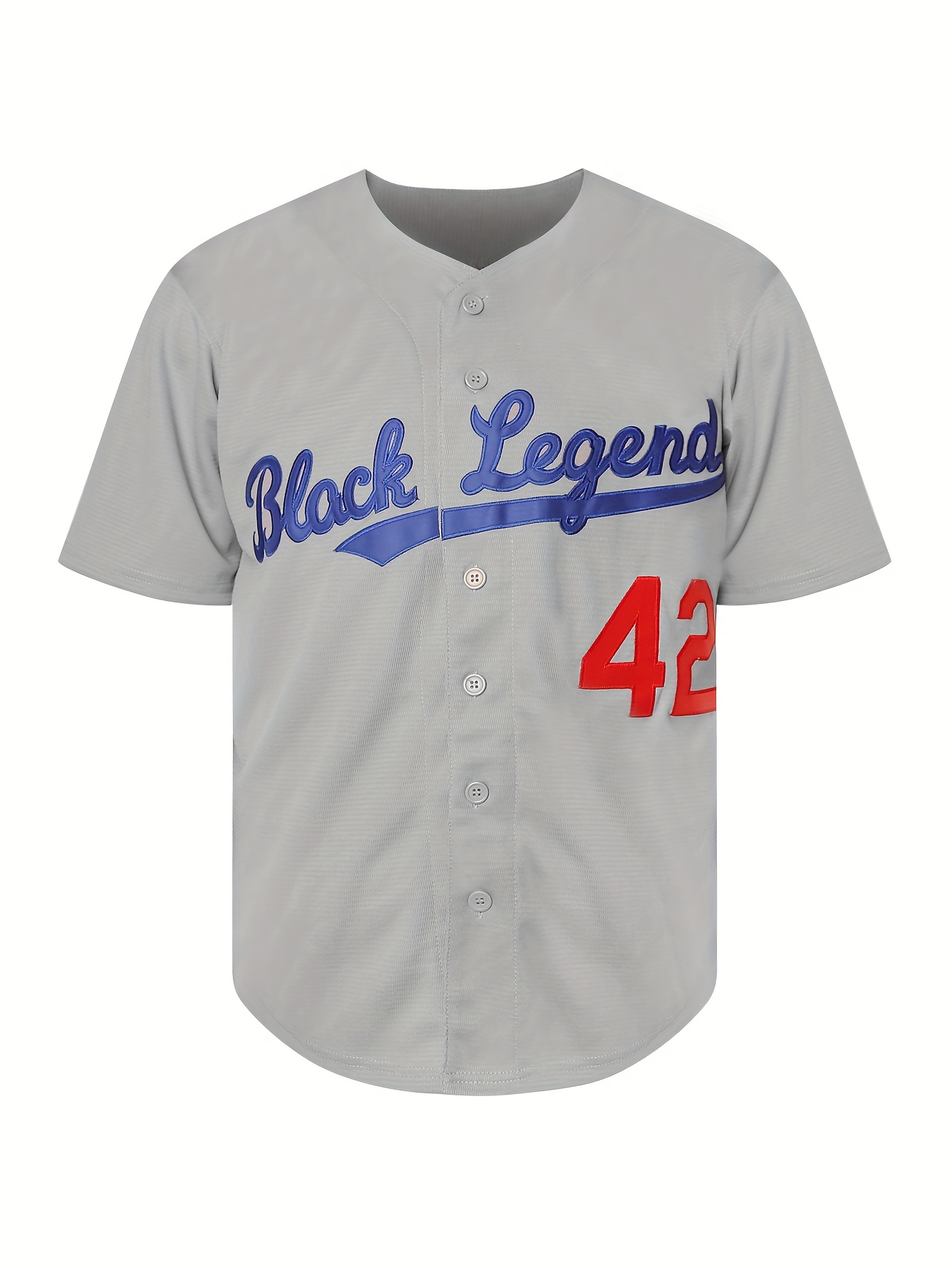 All Stitched 42 Baseball Jersey Letter Embroidery V Neck Short Sleeve Baseball Shirt, Breathable Button-Up Sports Uniform For Training Competition Party