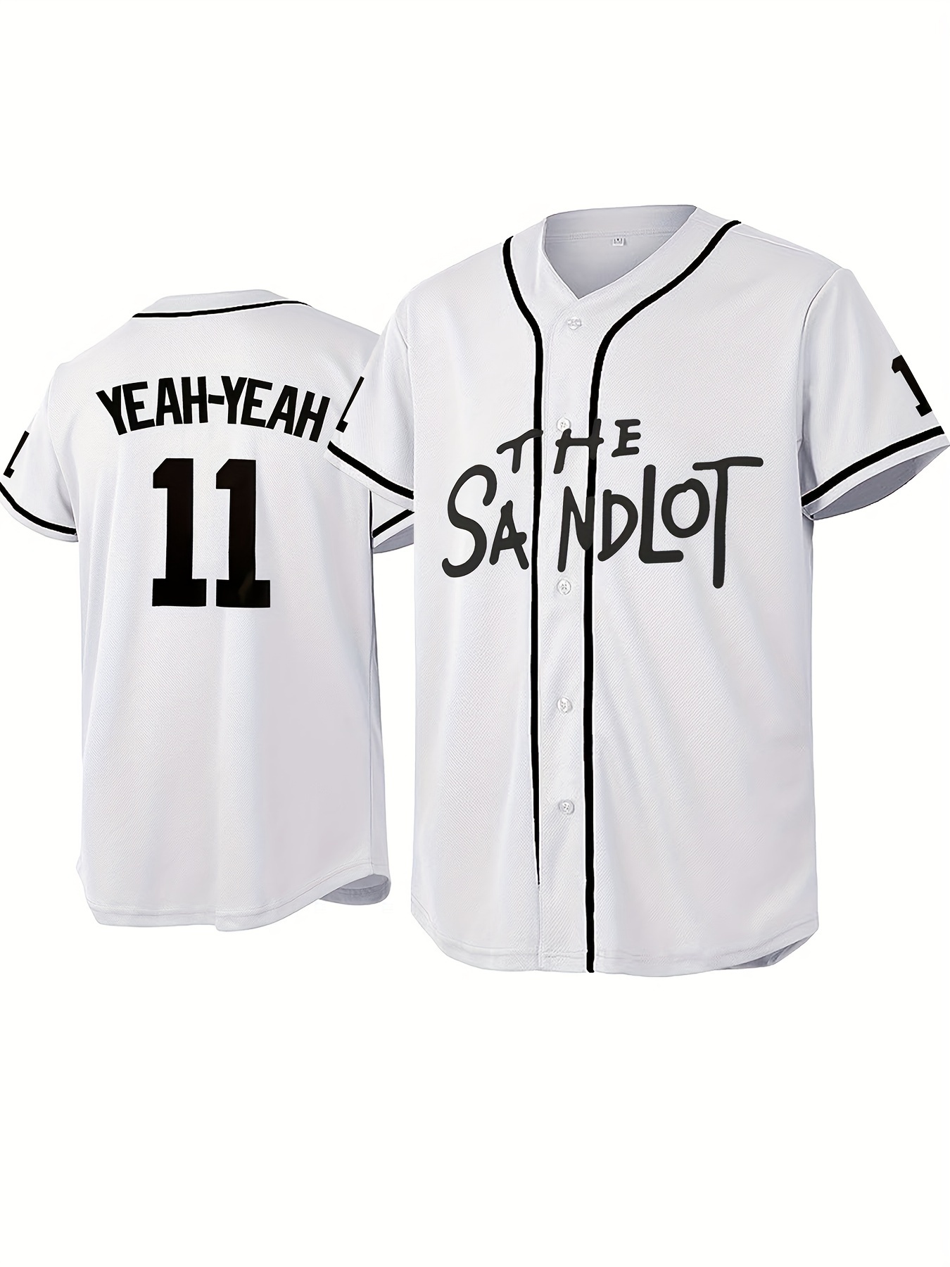 Men's #11 "The Sandlot" Baseball Jersey - White V-Neck Button-Up Shirt with Details, Loose Fit Casual & Sporty Design for Training, Outdoor Activities, Parties | All-Season Machine Washable, Sports Team Apparel | Functional Button Closure