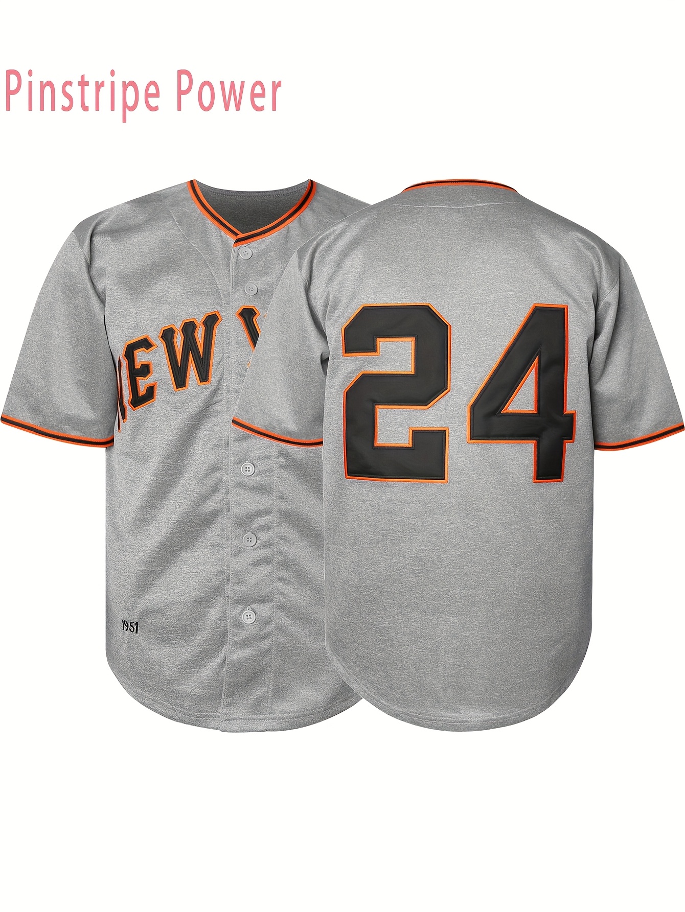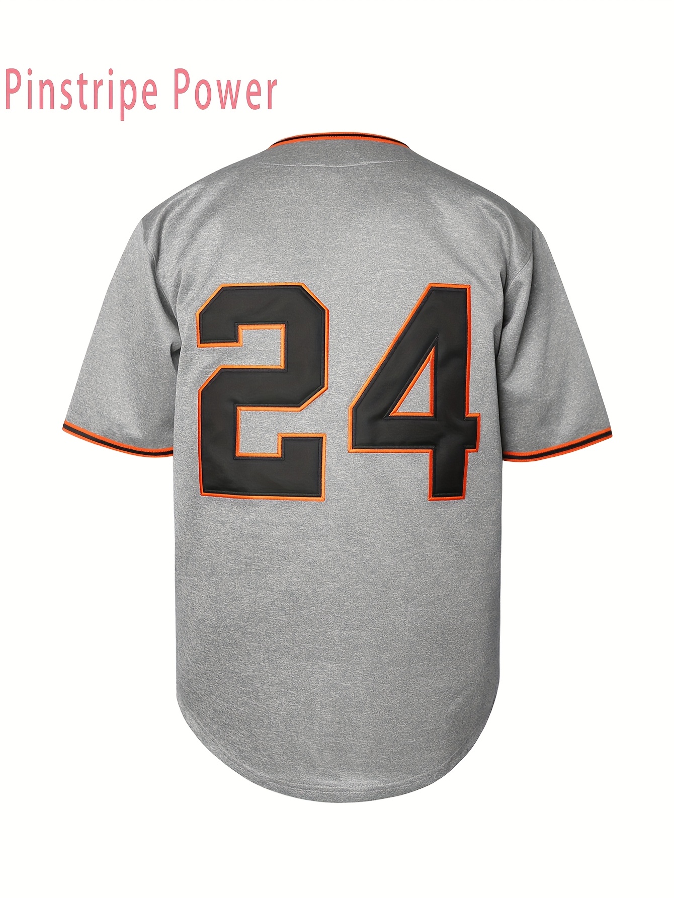 Men's #24 Gray V-Neck Baseball Jersey - Breathable Polyester Loose Fit Sports Top with Button Closure, Letter & Number Design, Micro Elastic for Training, Beach, Hiking, Casual Wear (Sizes S-3XL)