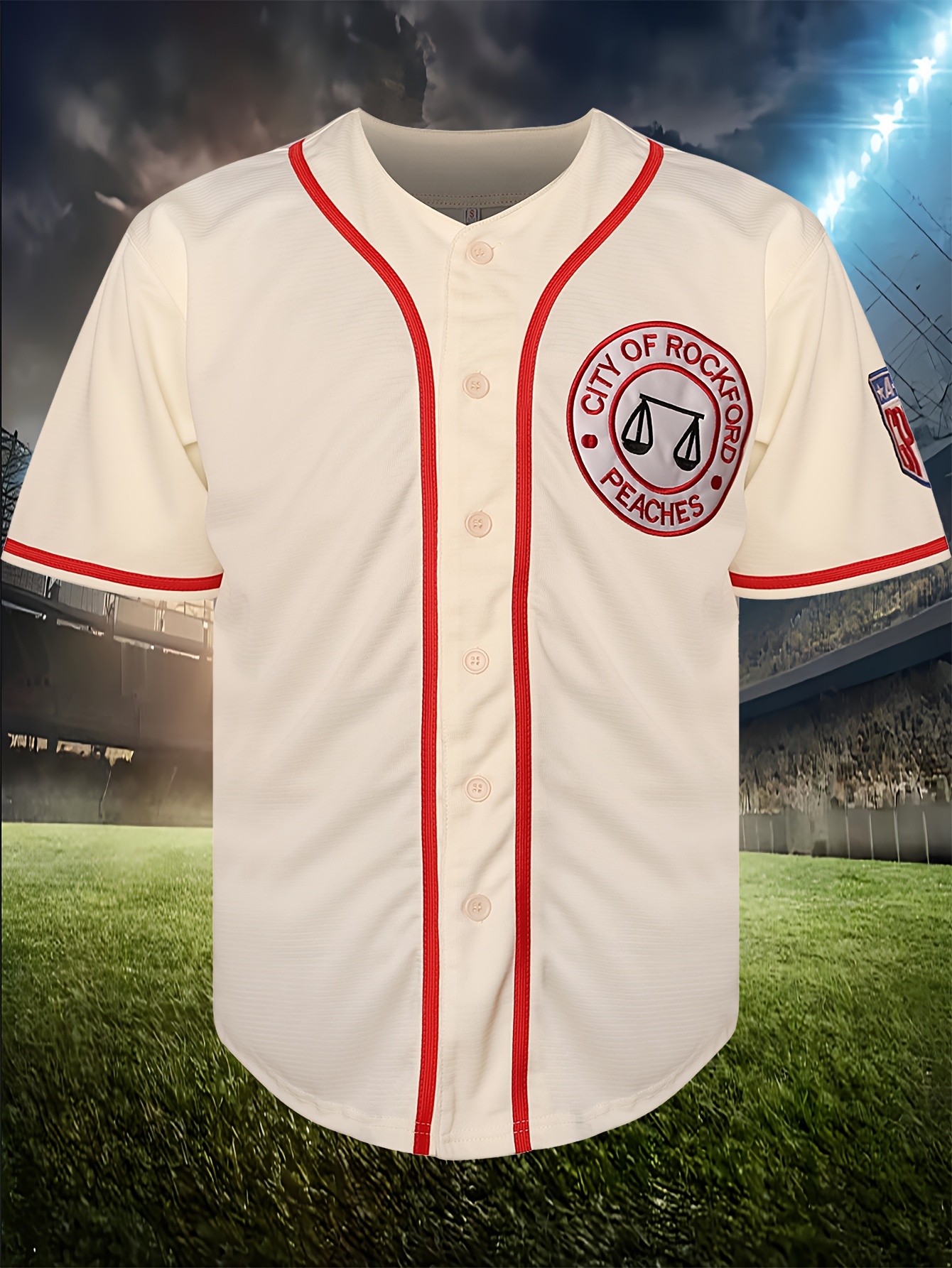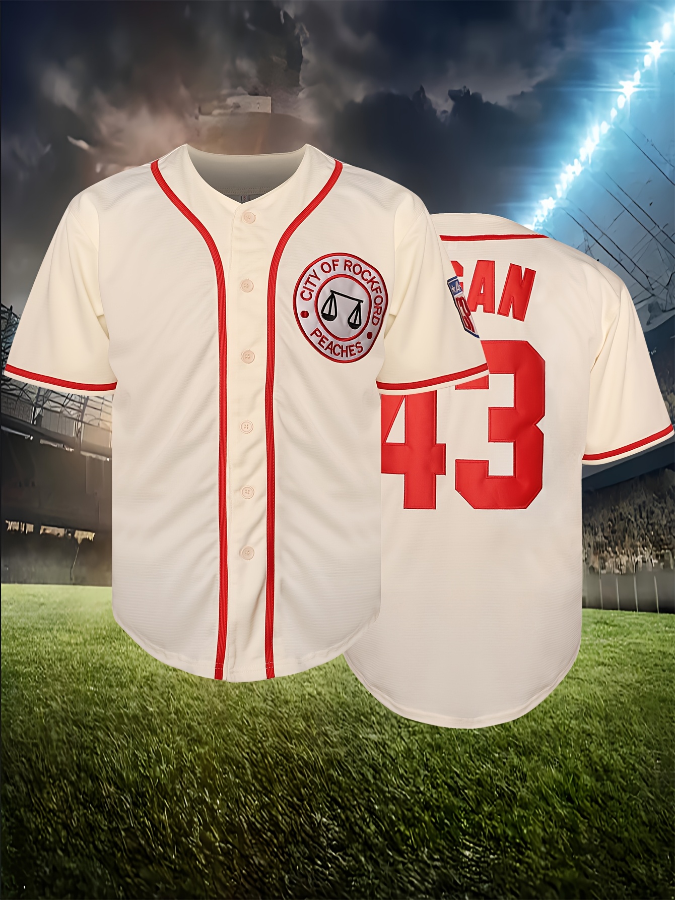 Men's #43 Beige Polyester Baseball Jersey, V-Neck, Button-Up, Ideal for Games & Training, Spring/Summer/Fall, Sizes S-3XL, Outdoor Activities Shirt | Casual Baseball Shirt | Durable Polyester