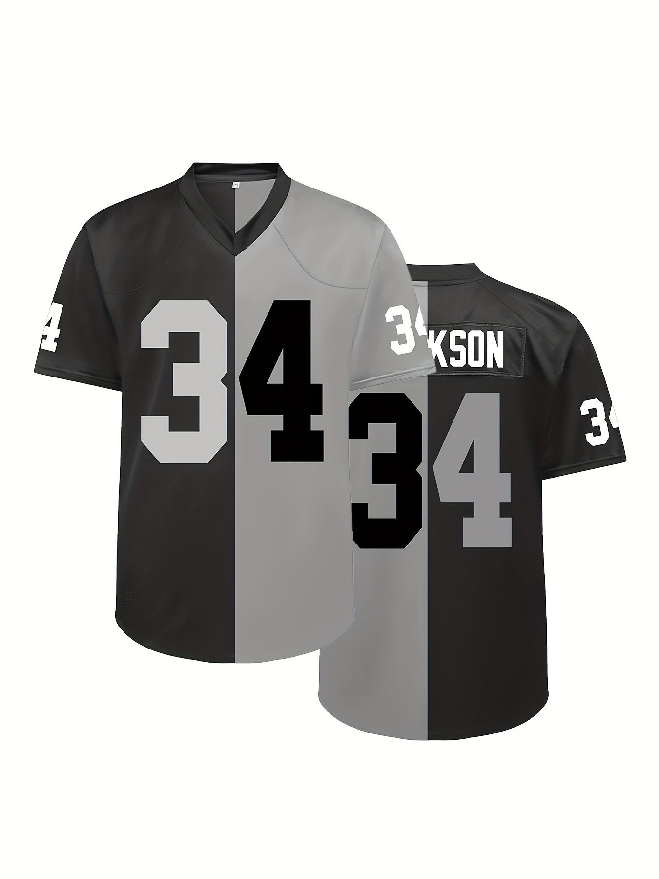 Men's Black #34 Breathable Rugby Jersey - V-Neck Short Sleeve American Football Shirt with Embroidered Lettering, Loose Fit for Training, Sports & Casual Wear, All-Season Comfort, Outdoor Activities Apparel, Sporty Vneck Design, Embroidered Detailing