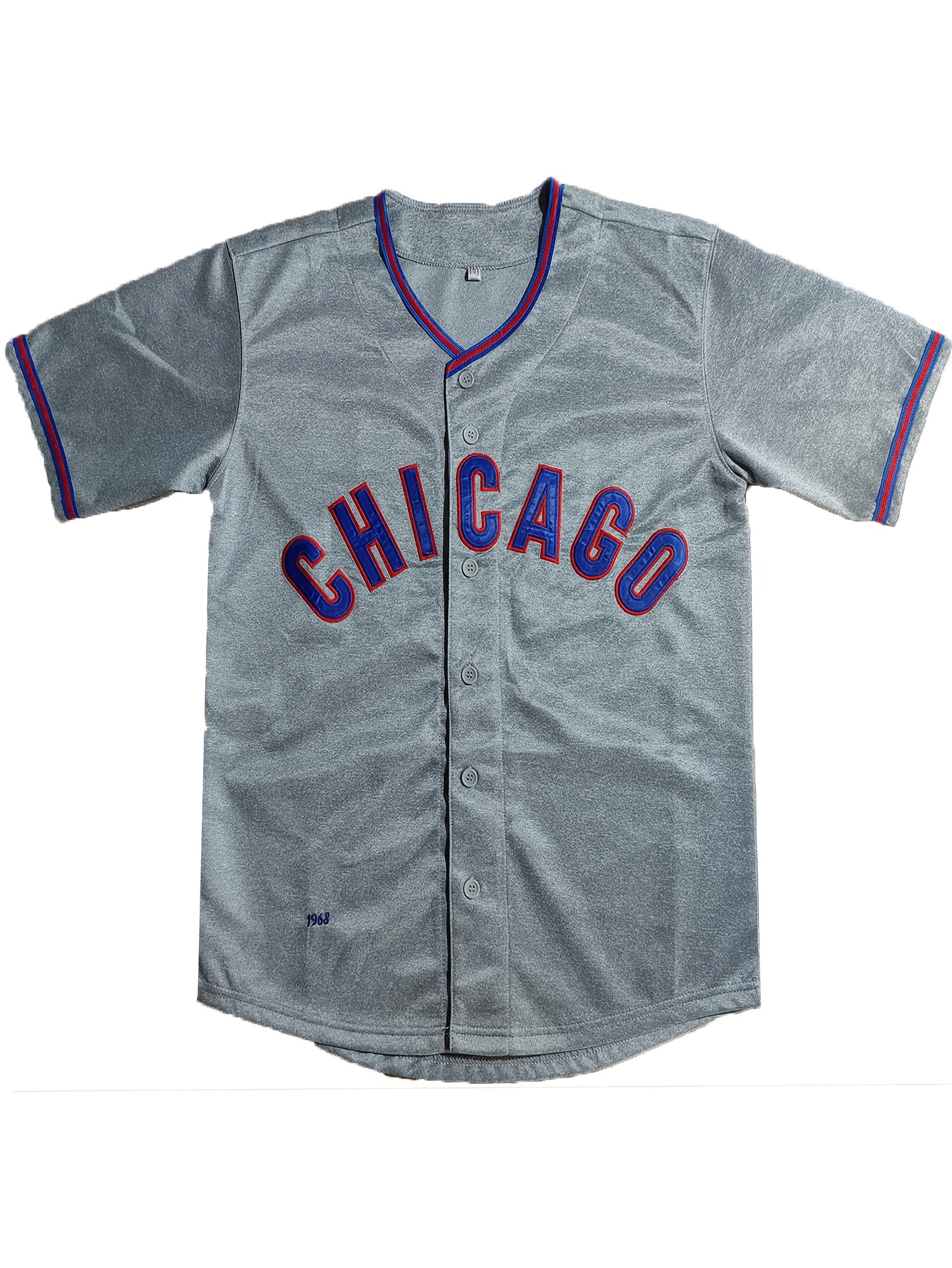 Men's Chicago #14 Embroidered Baseball Jersey - Grey V-Neck Short Sleeve Shirt with Striped Collar & Cuffs, Breathable Button-Up Sports Uniform for Parties, Training & Casual Wear, Team Event Apparel | Sporty Vneck | Durable Sportswear