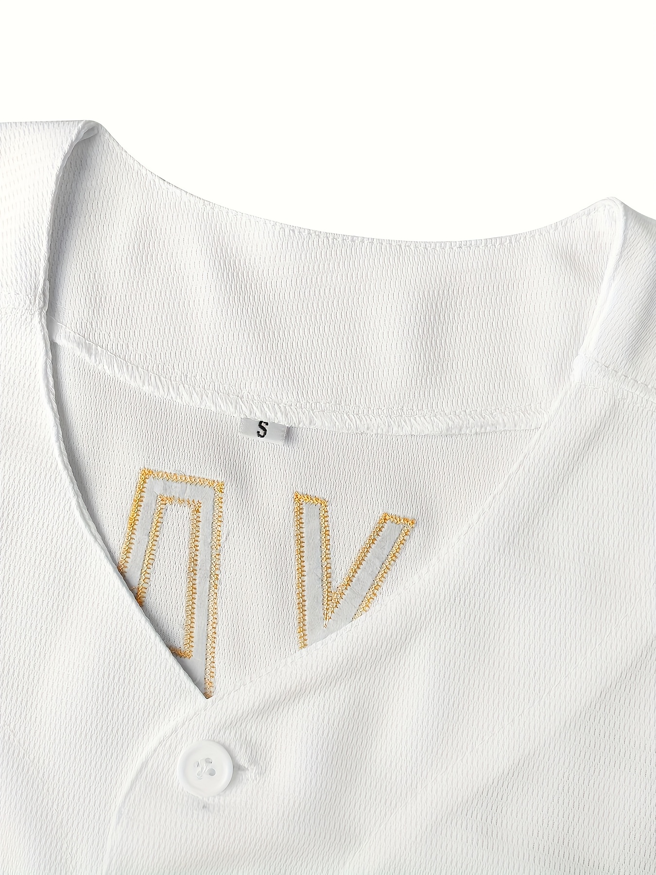 Men'S Letter Embroidery Short Sleeve V-neck Loose Button Up Shirt, Men'S Vintage Summer Baseball Jersey For Party