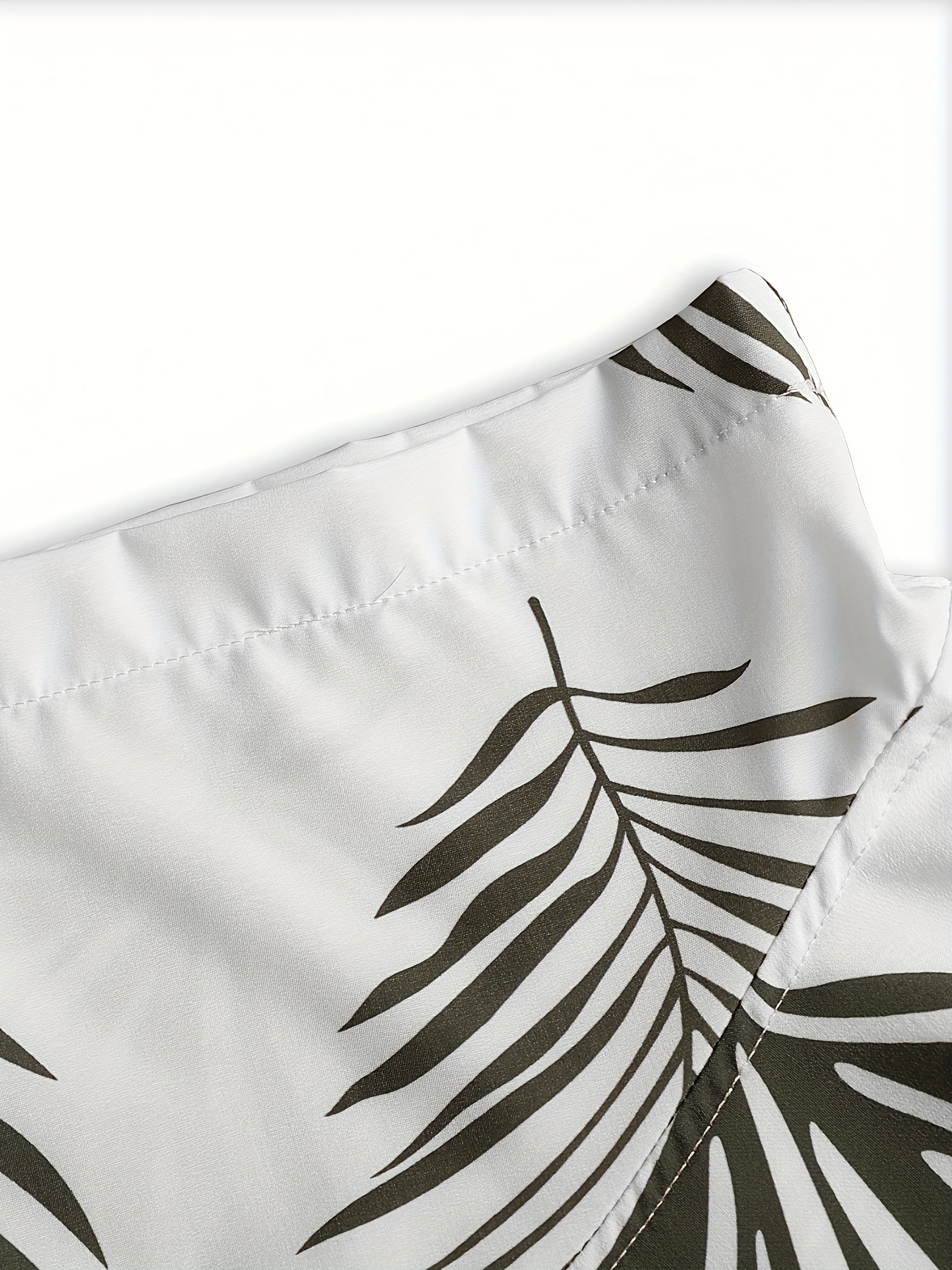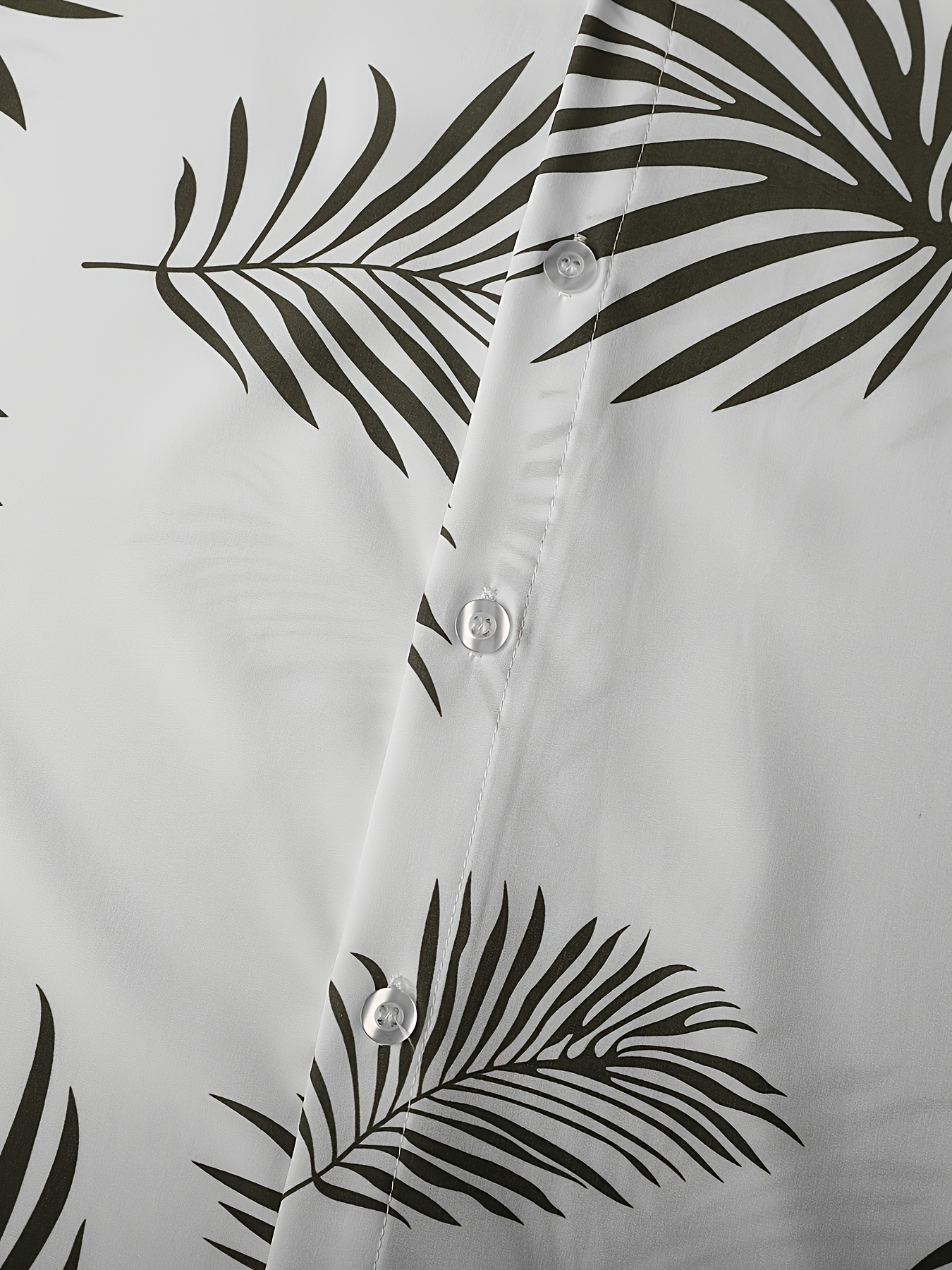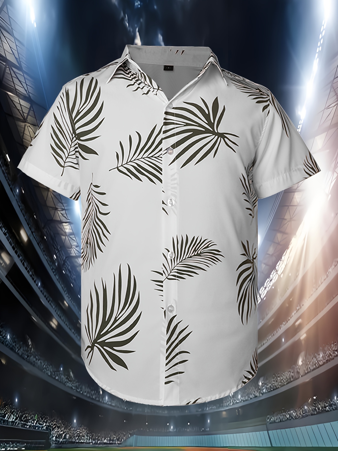 Men's Stylish Green Leaf Print Baseball Shirt - 100% Polyester, V-Neck, Loose Fit for Casual Sports & Parties, S-3XL, Machine Washable, Perfect for Summer Outings, Beach Parties & Outdoor Activities, Best for Christmas
