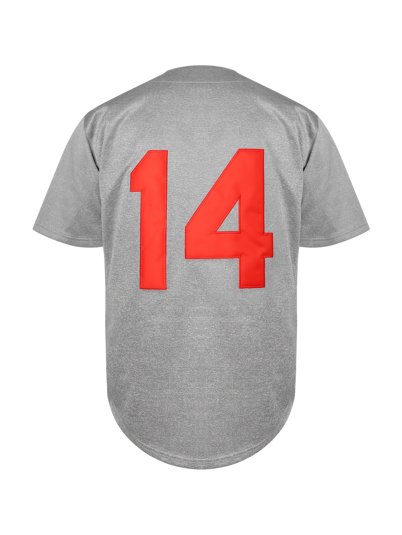 Stitched #14 Grey Baseball Jersey Red Letter Embroidery V Neck Short Sleeve Baseball Shirt, Breathable Button-Up Sports Uniform For Training Competition Party