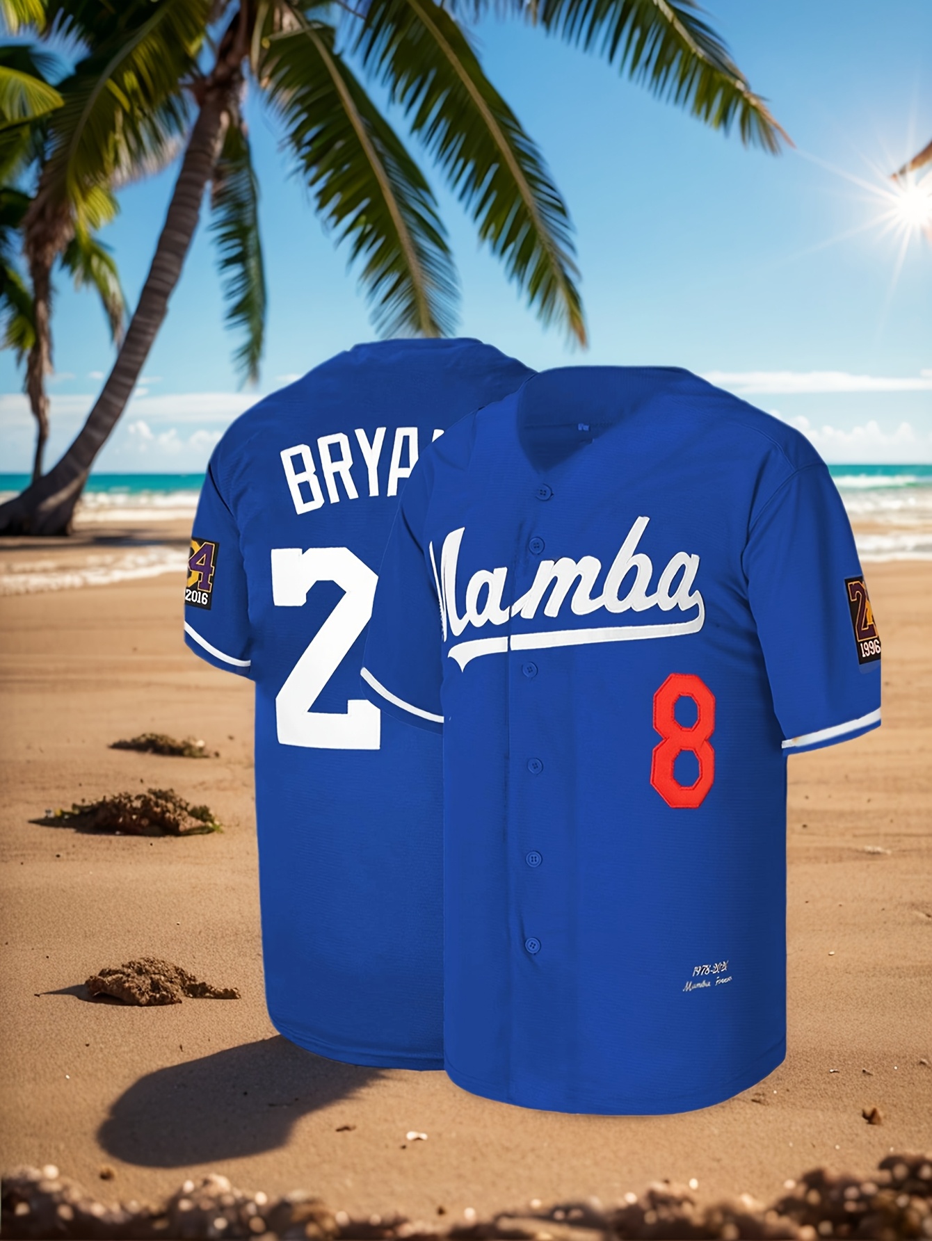 Stitched 24 Blue Baseball Jersey Embroidery V Neck Short Sleeve Baseball Shirt, Breathable Button-Up Sports Uniform For Training Competition Party