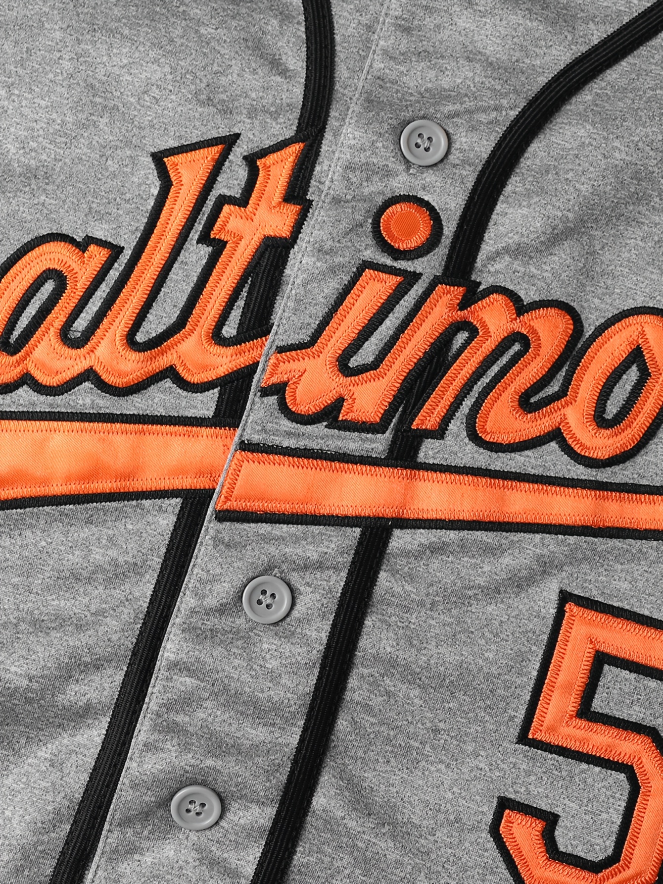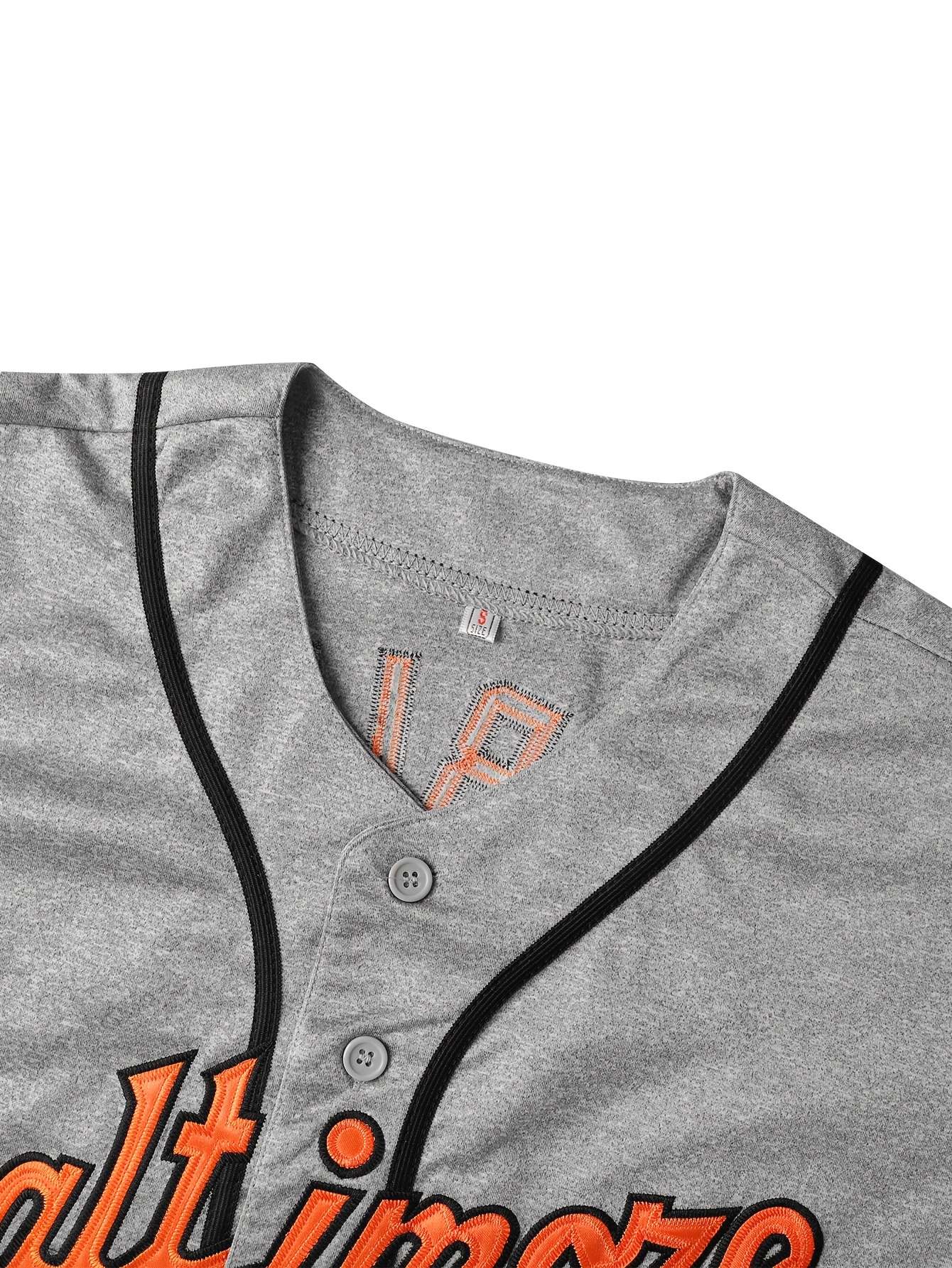 Stitched 5 Grey Baseball Jersey Red Letter Embroidery V Neck Short Sleeve Baseball Shirt, Breathable Button-Up Sports Uniform for Training Competition Party