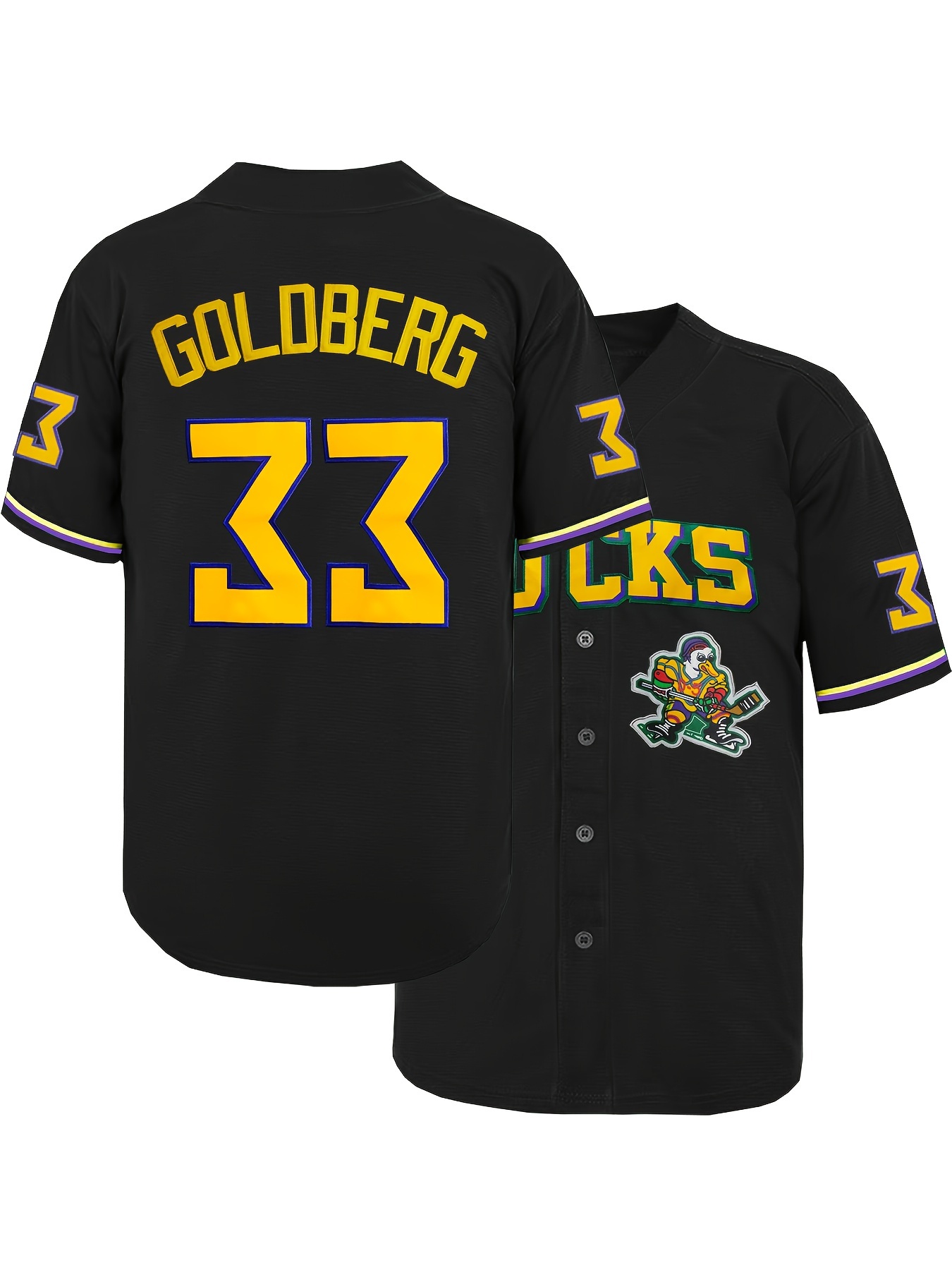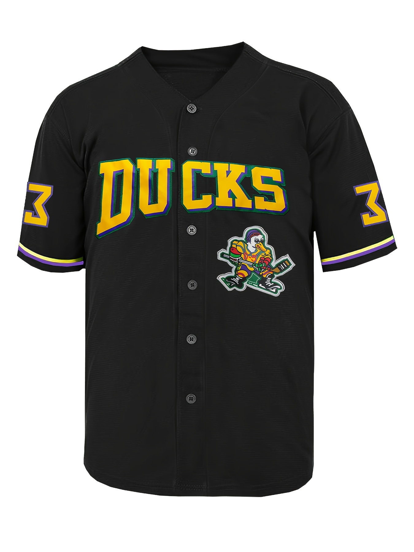 Stylish Duck & Number 33 Embroidered Design, Men'S Breathable Baseball Jersey, Short Sleeve Shirt For Summer Sport
