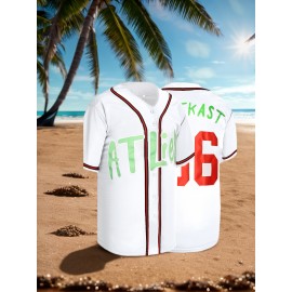 Stitched Men's & Unisex #10 White Baseball Jersey - Embroidered V-Neck Short Sleeve, Breathable Button-Up Sports Uniform with Pinstripes for Training, Competition, Casual & Parties, Athletic Clothing, Sporty Look, Embroidered Detailing