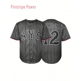 All Stitched 42 Baseball Jersey Letter Embroidery V Neck Short Sleeve Baseball Shirt, Breathable Button-Up Sports Uniform For Training Competition Party