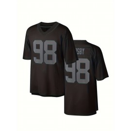 Men'S Black # 98 Breathable Rugby Shirt, Sports V-Neck Short Sleeved Training Shirt, Classic Embroidered American Football Shirt