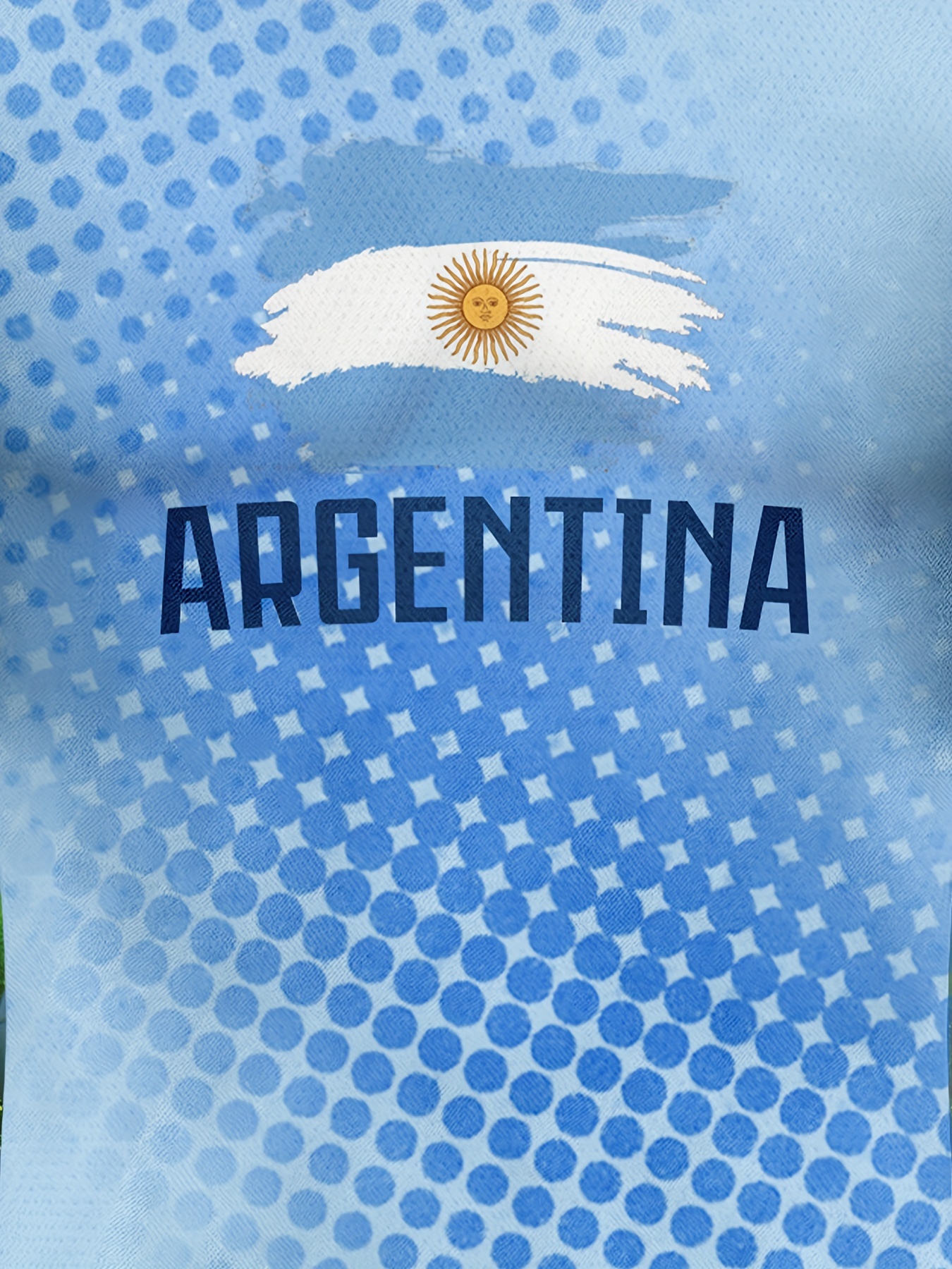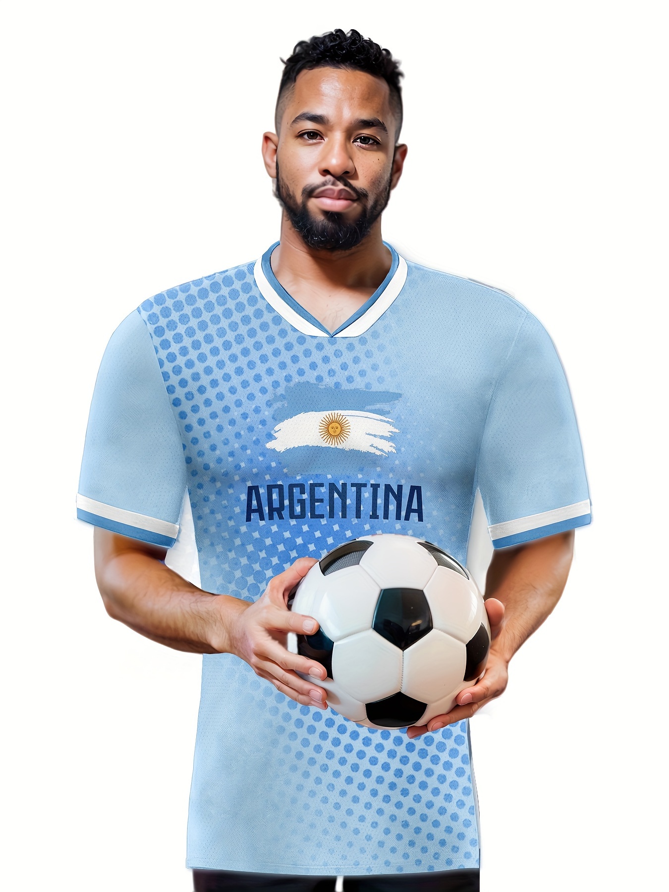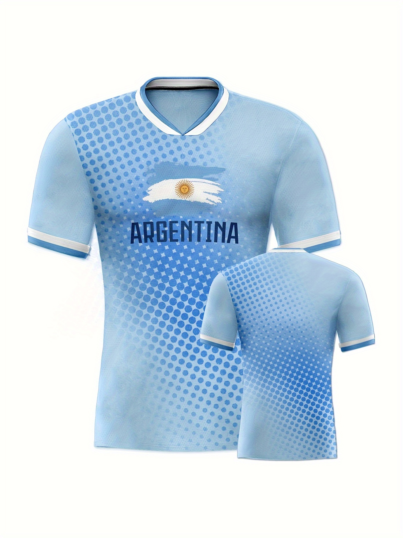 Argentina-Inspired Sun Pattern Sports Soccer Jersey, Fan Edition Shirt With Professional Fabric, Lightweight Breathable Athletic Top For Football Fans