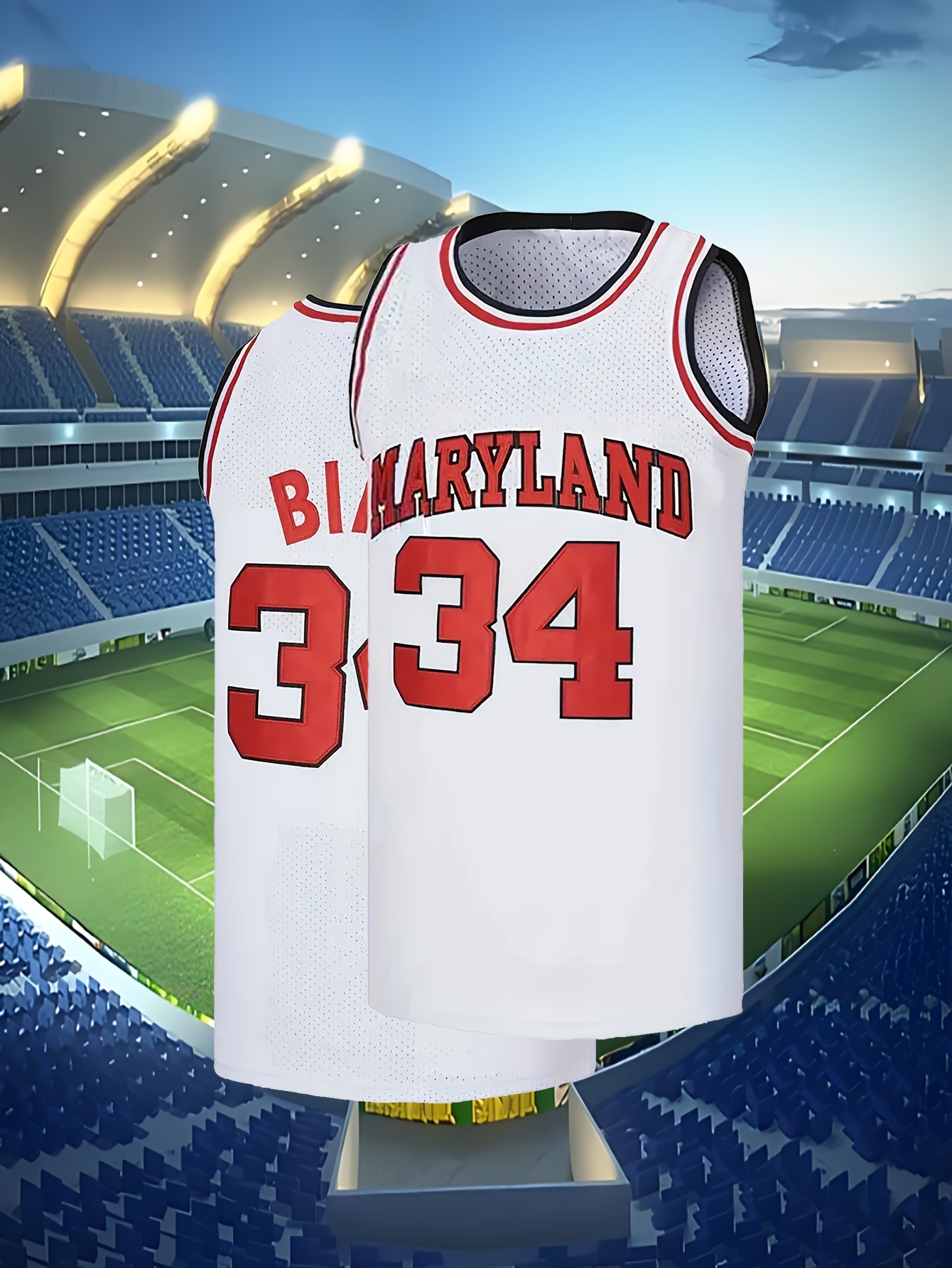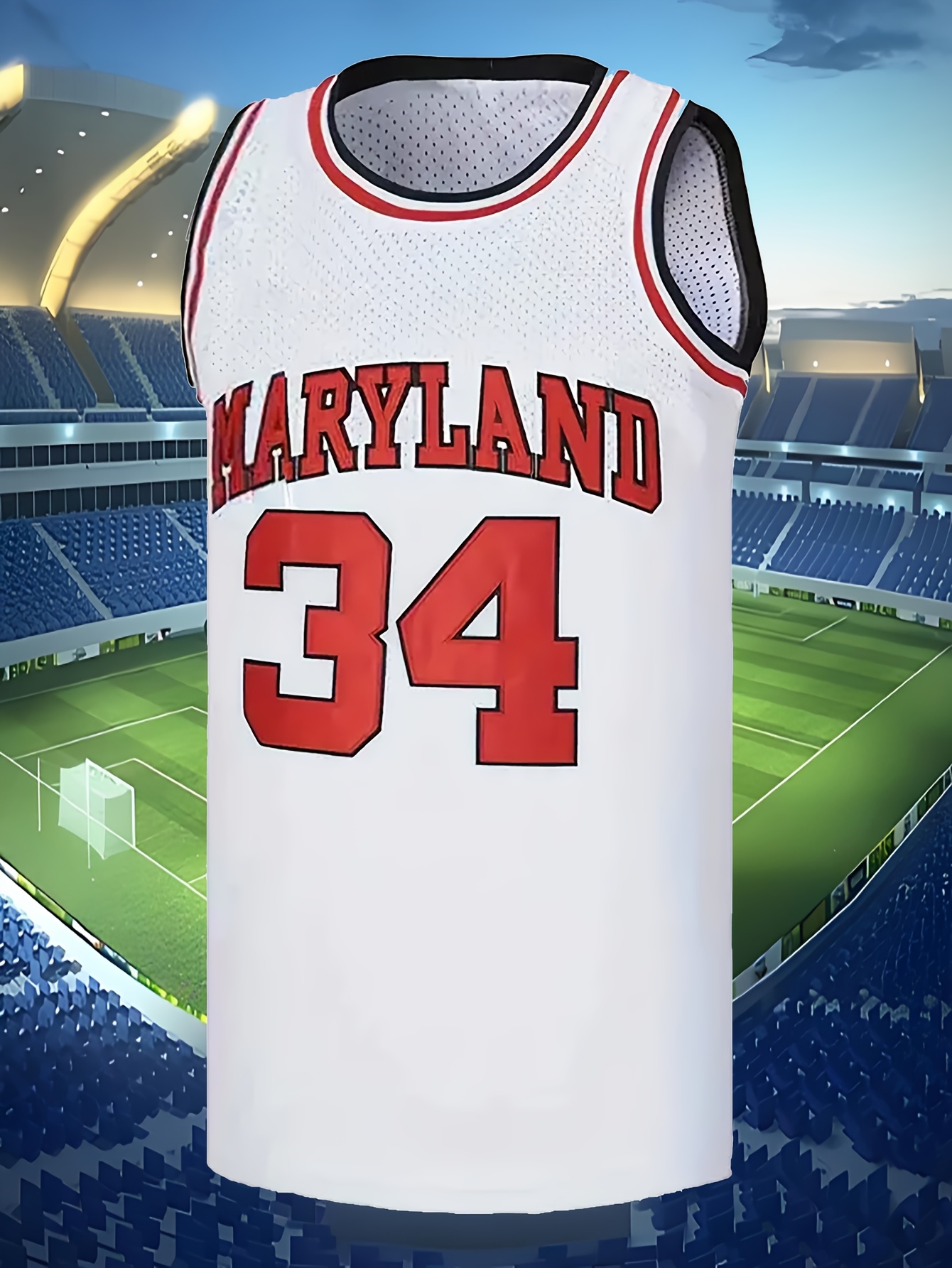 [Embroidered Detail] Men's #34 Maryland Basketball Jersey - Breathable Polyester, Round Neck, Embroidered, Loose Fit for Training & Casual Wear, Sizes S-XXXL, Athletic Clothing|Casual Style|Durable Knit