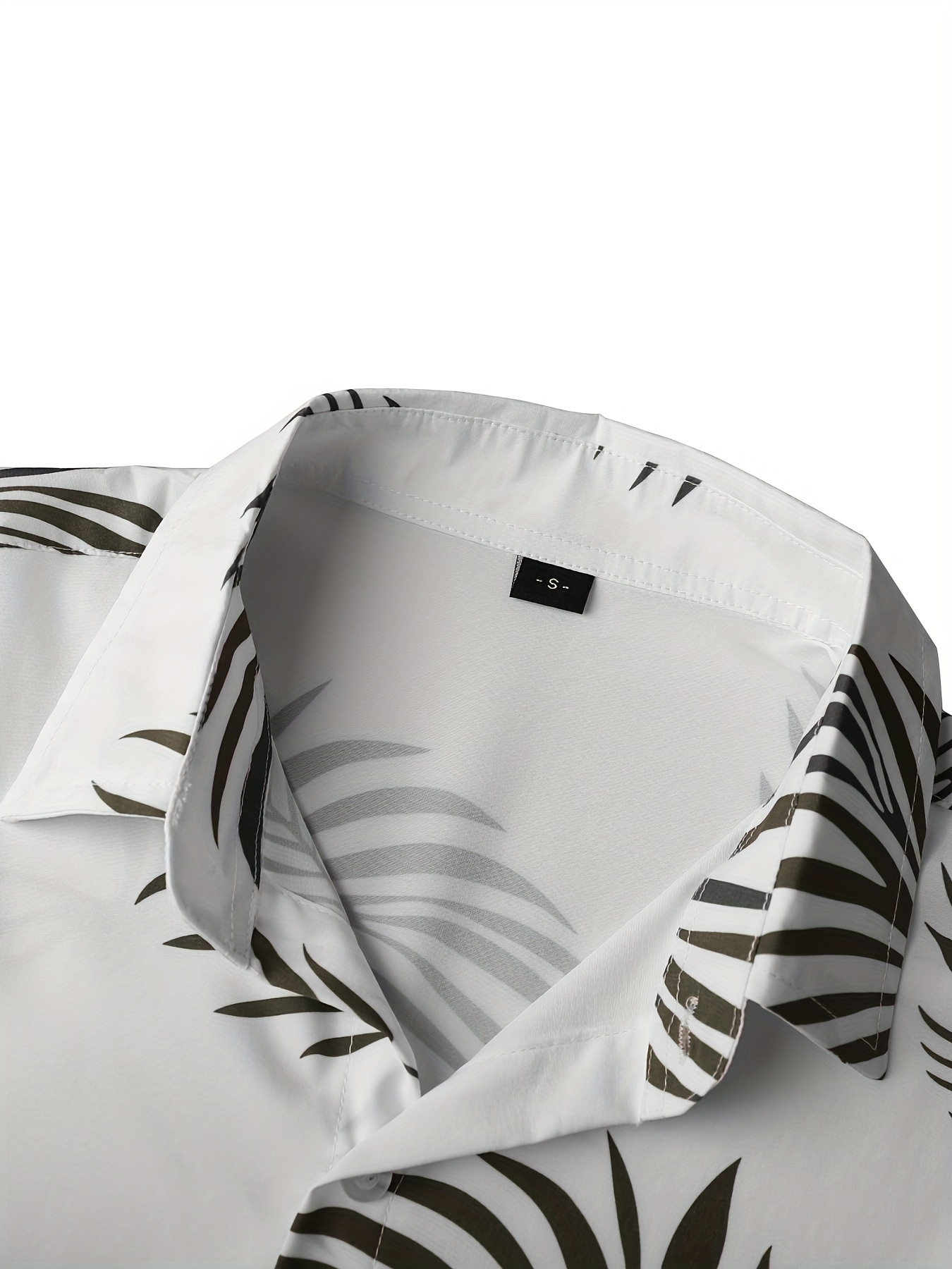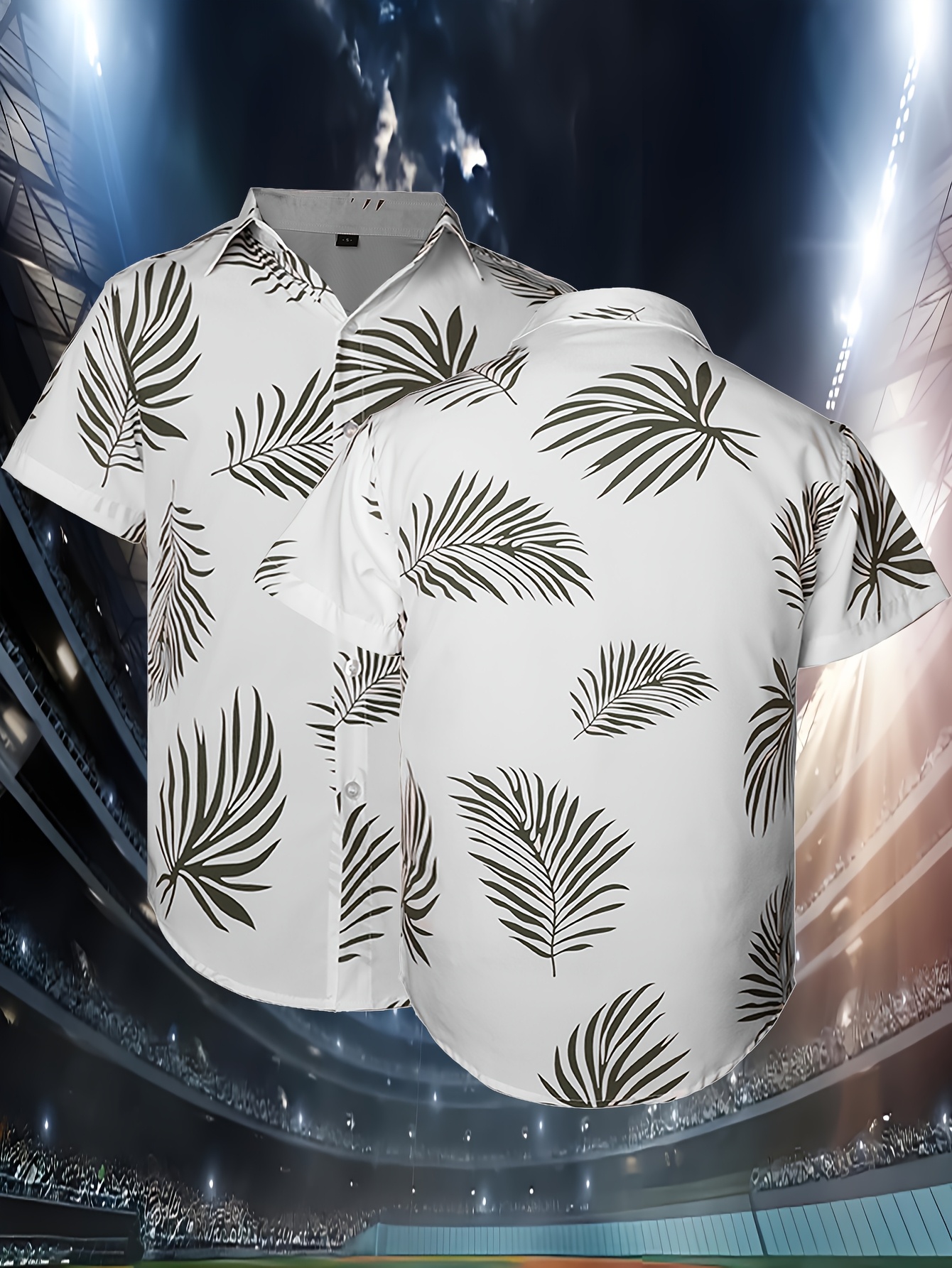 Men's Stylish Green Leaf Print Baseball Shirt - 100% Polyester, V-Neck, Loose Fit for Casual Sports & Parties, S-3XL, Machine Washable, Perfect for Summer Outings, Beach Parties & Outdoor Activities, Best for Christmas