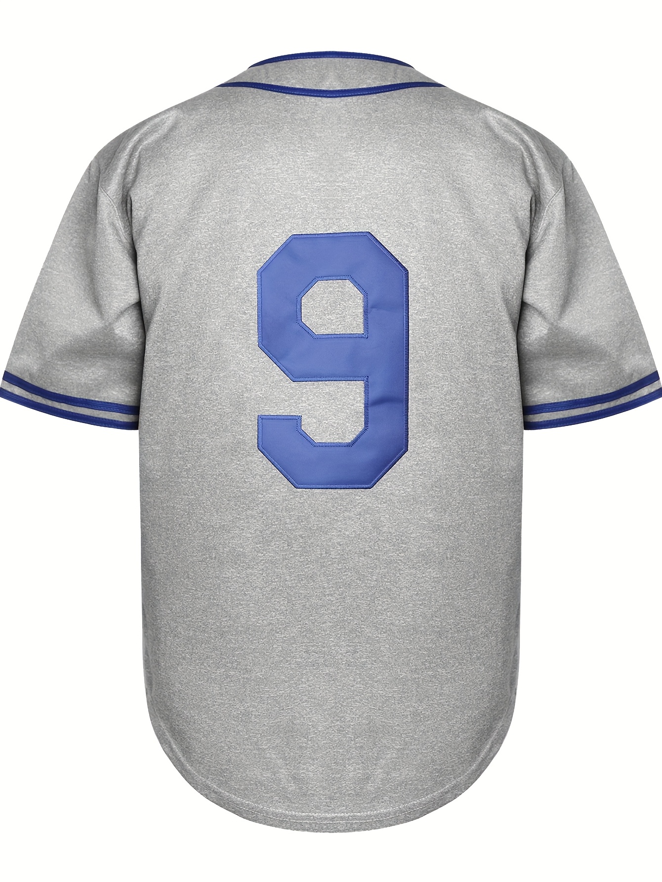 Stitched #9 Grey Baseball Jersey Red Letter Embroidery V Neck Short Sleeve Baseball Shirt, Breathable Button-Up Sports Uniform For Training Competition Party