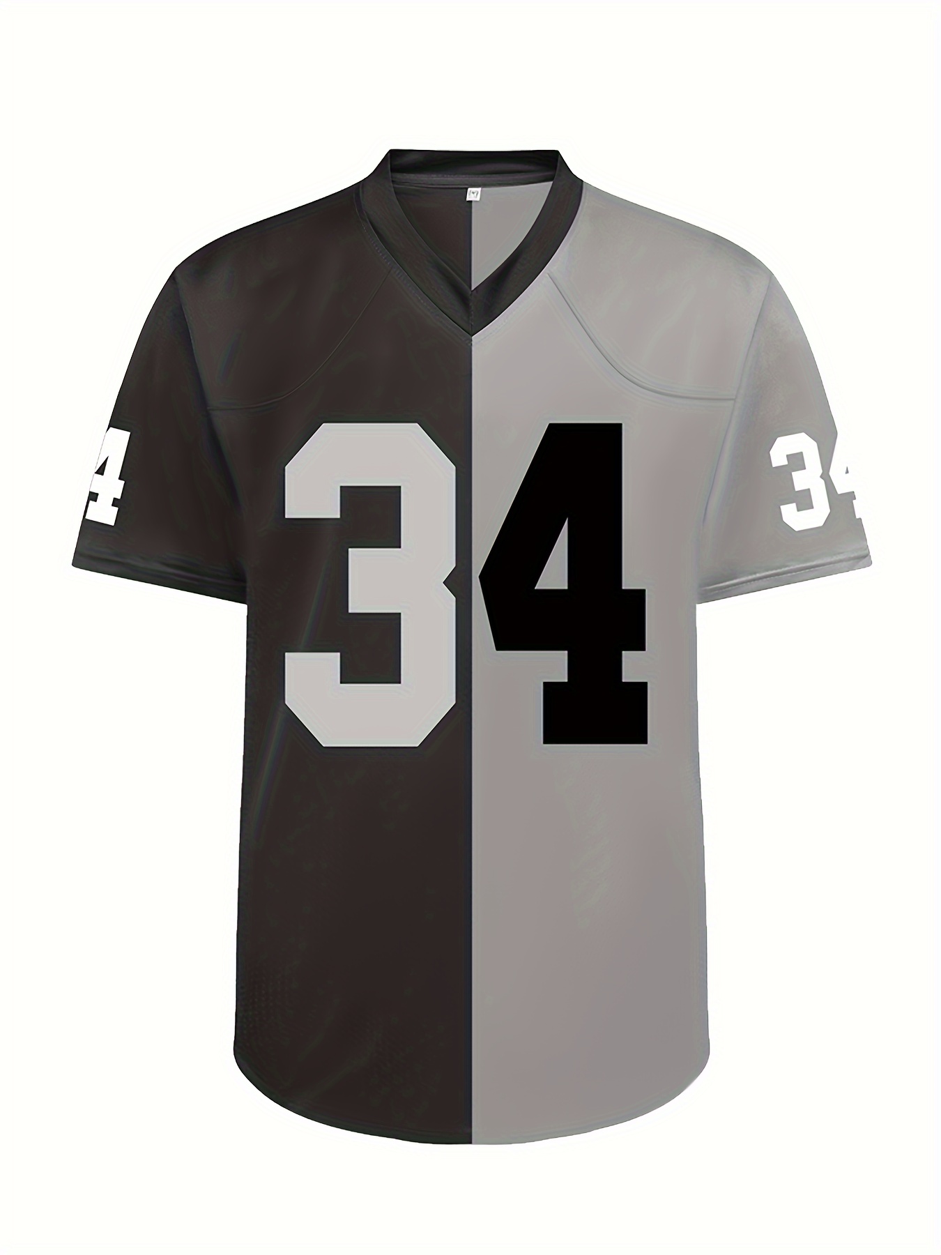 Men's Black #34 Breathable Rugby Jersey - V-Neck Short Sleeve American Football Shirt with Embroidered Lettering, Loose Fit for Training, Sports & Casual Wear, All-Season Comfort, Outdoor Activities Apparel, Sporty Vneck Design, Embroidered Detailing