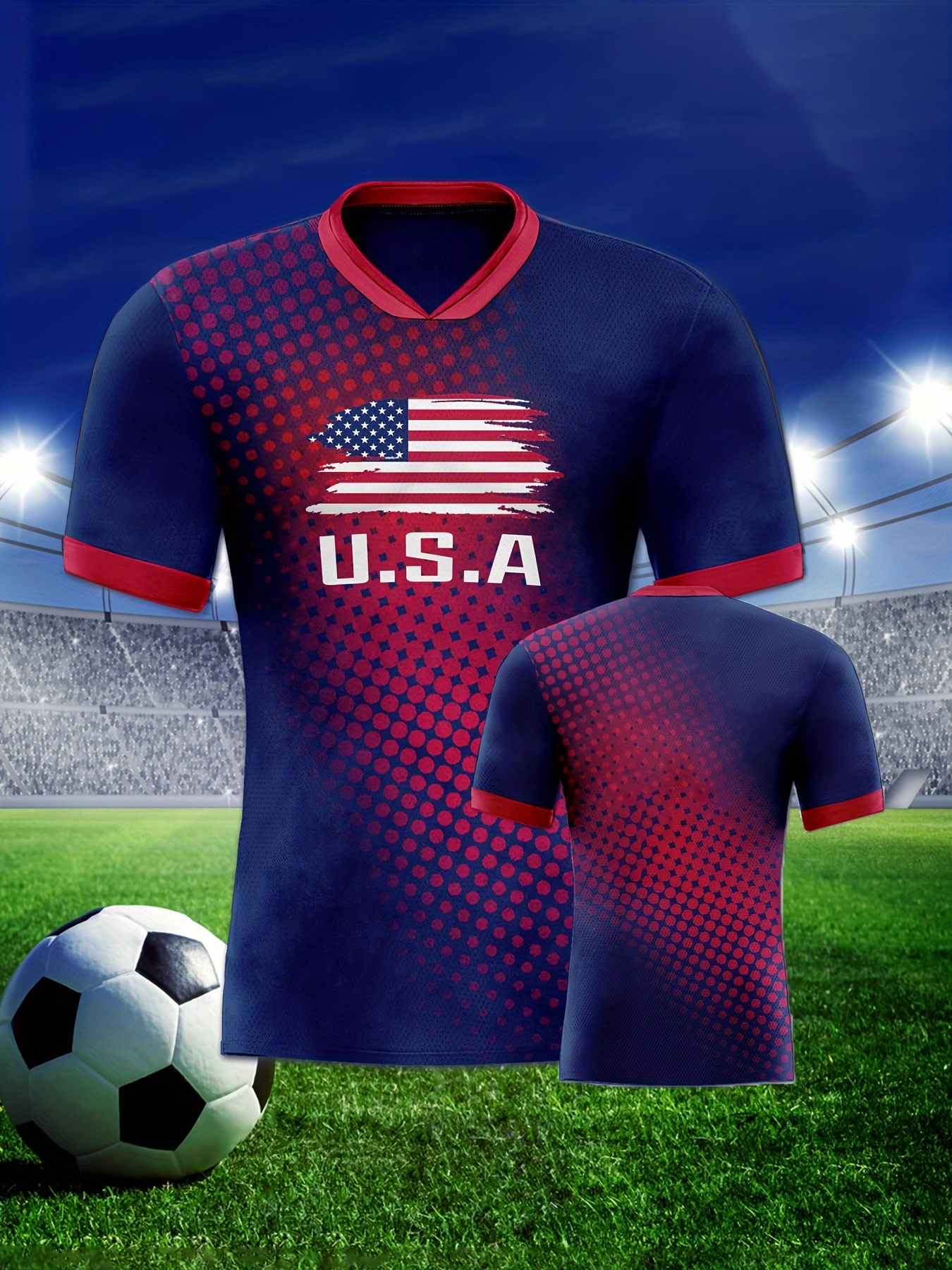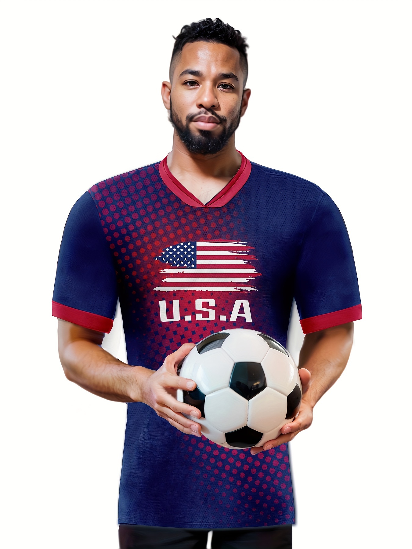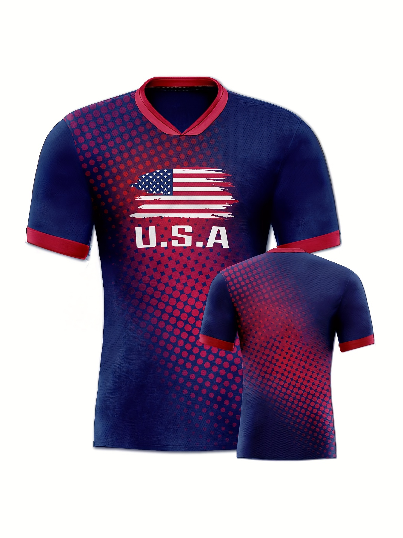 Men's USA Flag Soccer Jersey T-Shirt - Patriotic Home & Sports Wear, Breathable Polyester, Short Sleeve, Round Neck, Machine Washable, Summer-Ready with Creative Pattern Print for Casual & Athletic Occasions